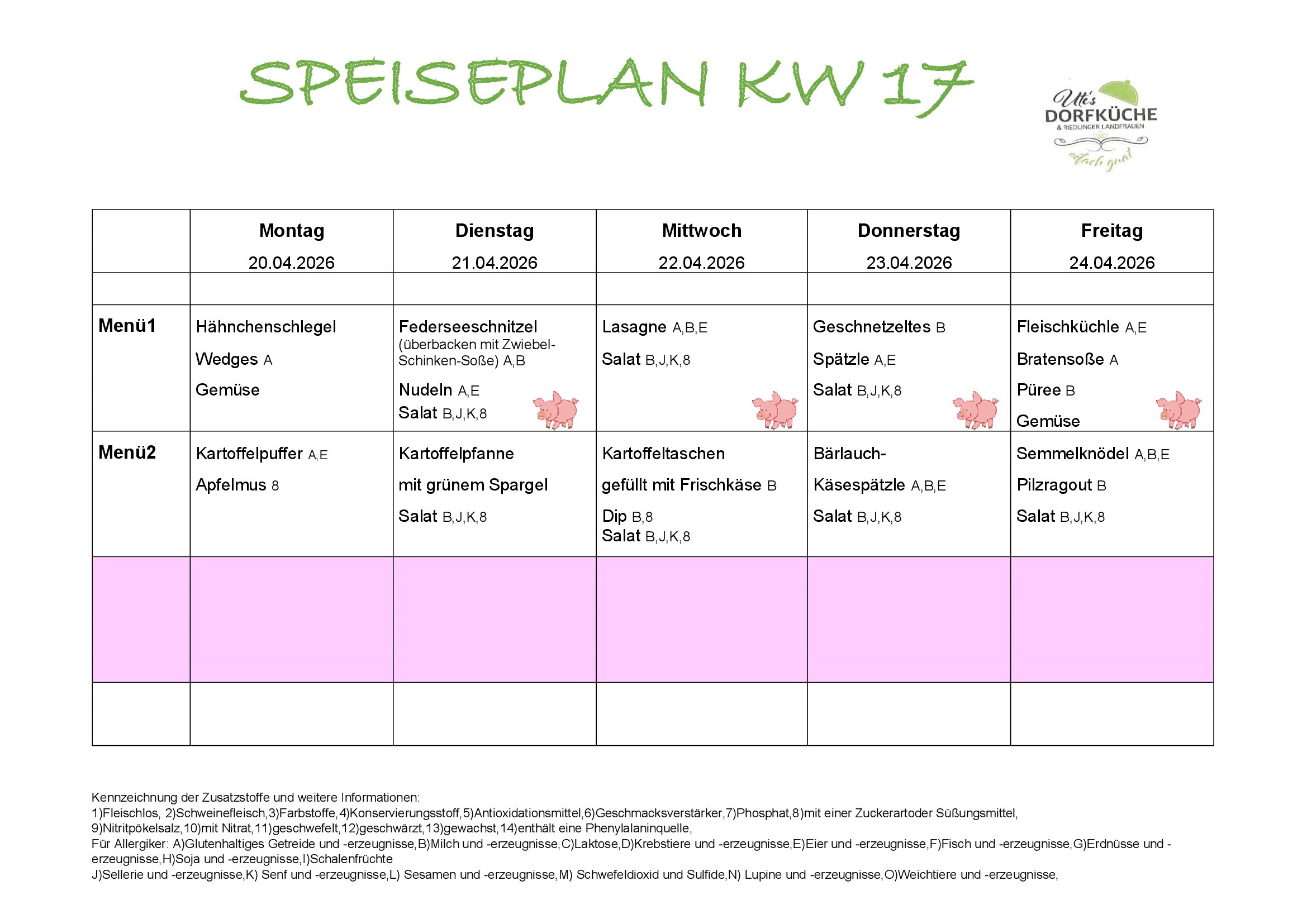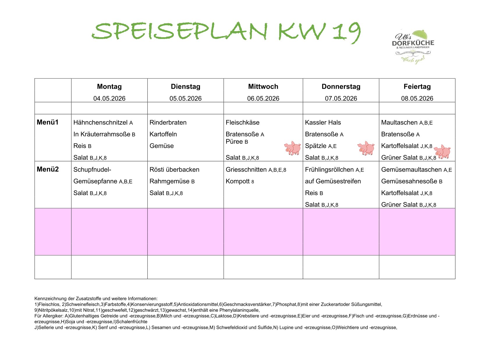 Der Wochenplan kann sowohl hier, als auch auf Instagram angesehen werden.
