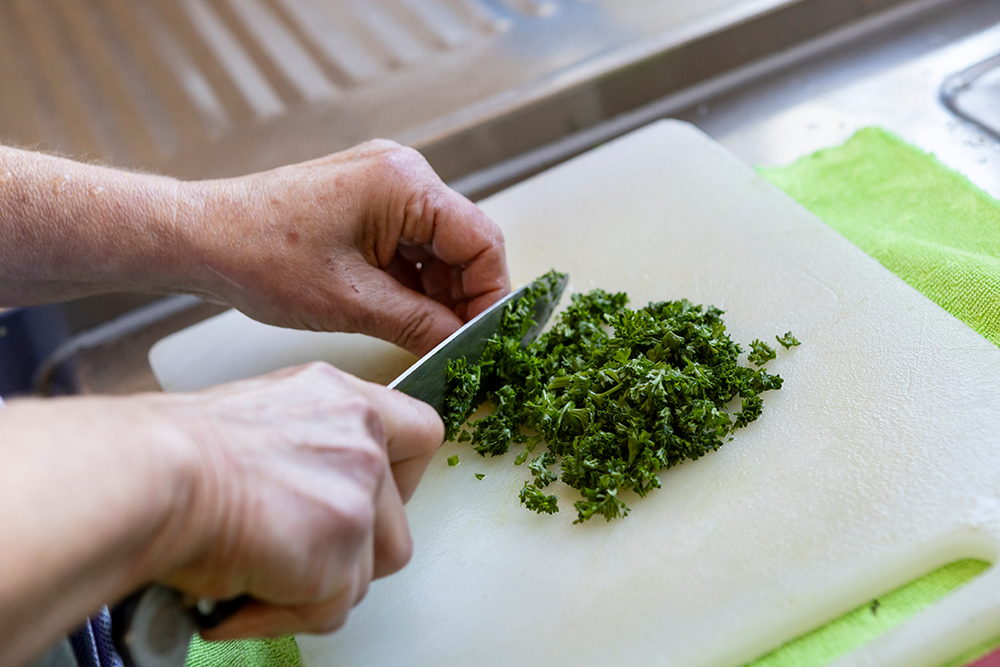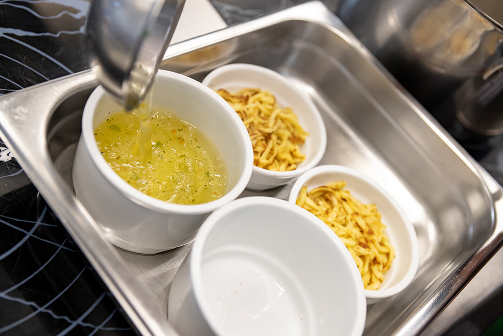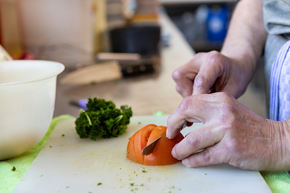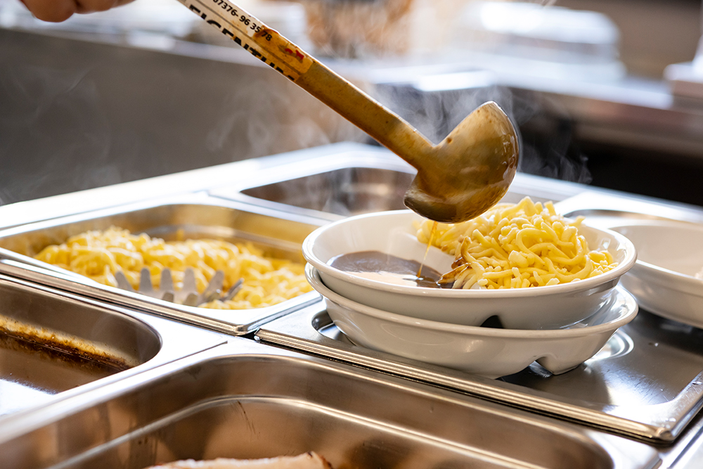 Jeden Tag werden in unserer modernen, neuen Großküche 120 Essen frisch zubereitet. Lokale Landwirte und Lieferanten liefern die Zutaten, die eigene Metzgerei im Haus sorgt für kurze Wege.